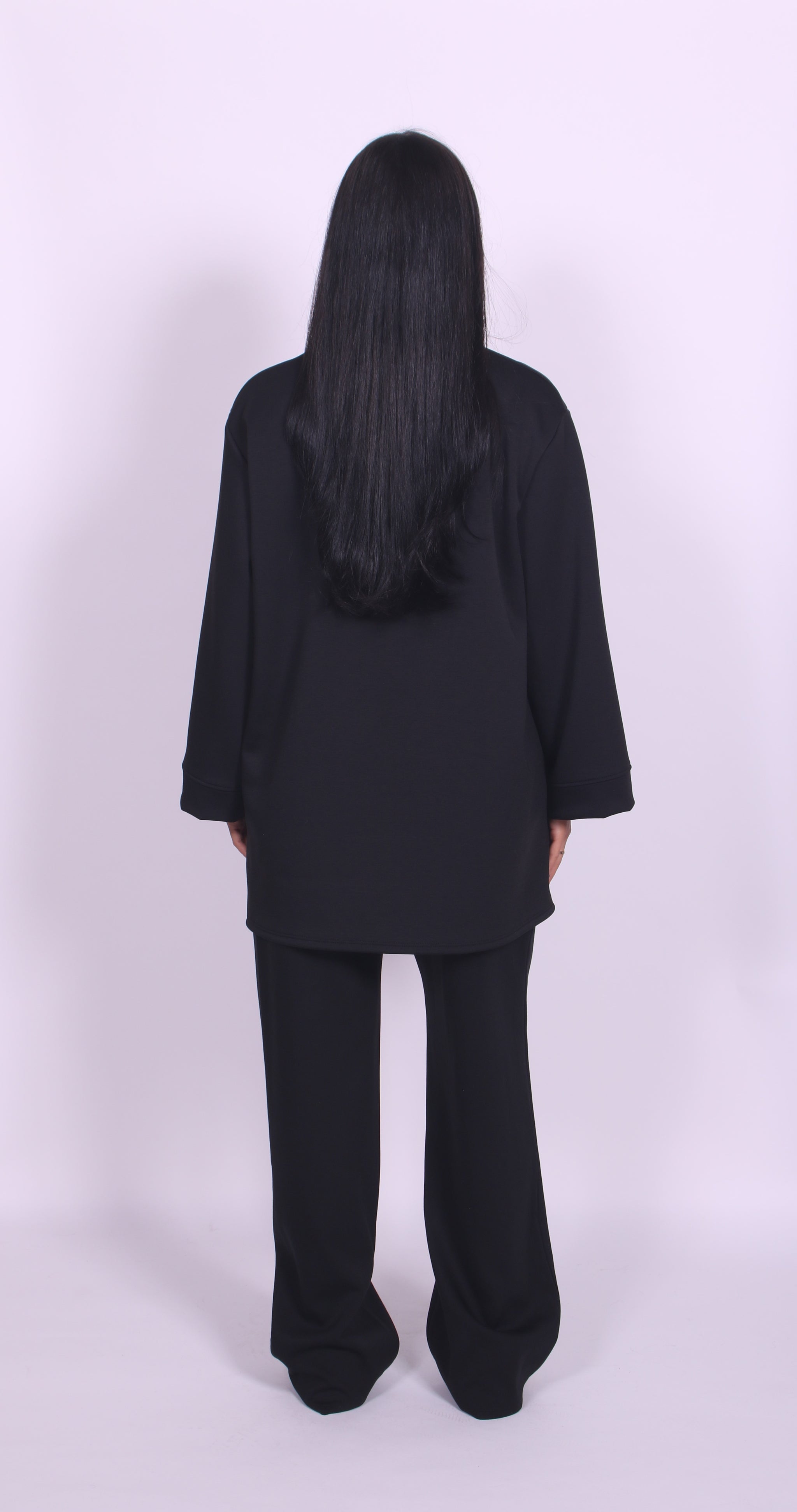 Het model is 1.65 lang en draagt de Comfy twinset in maat one size.