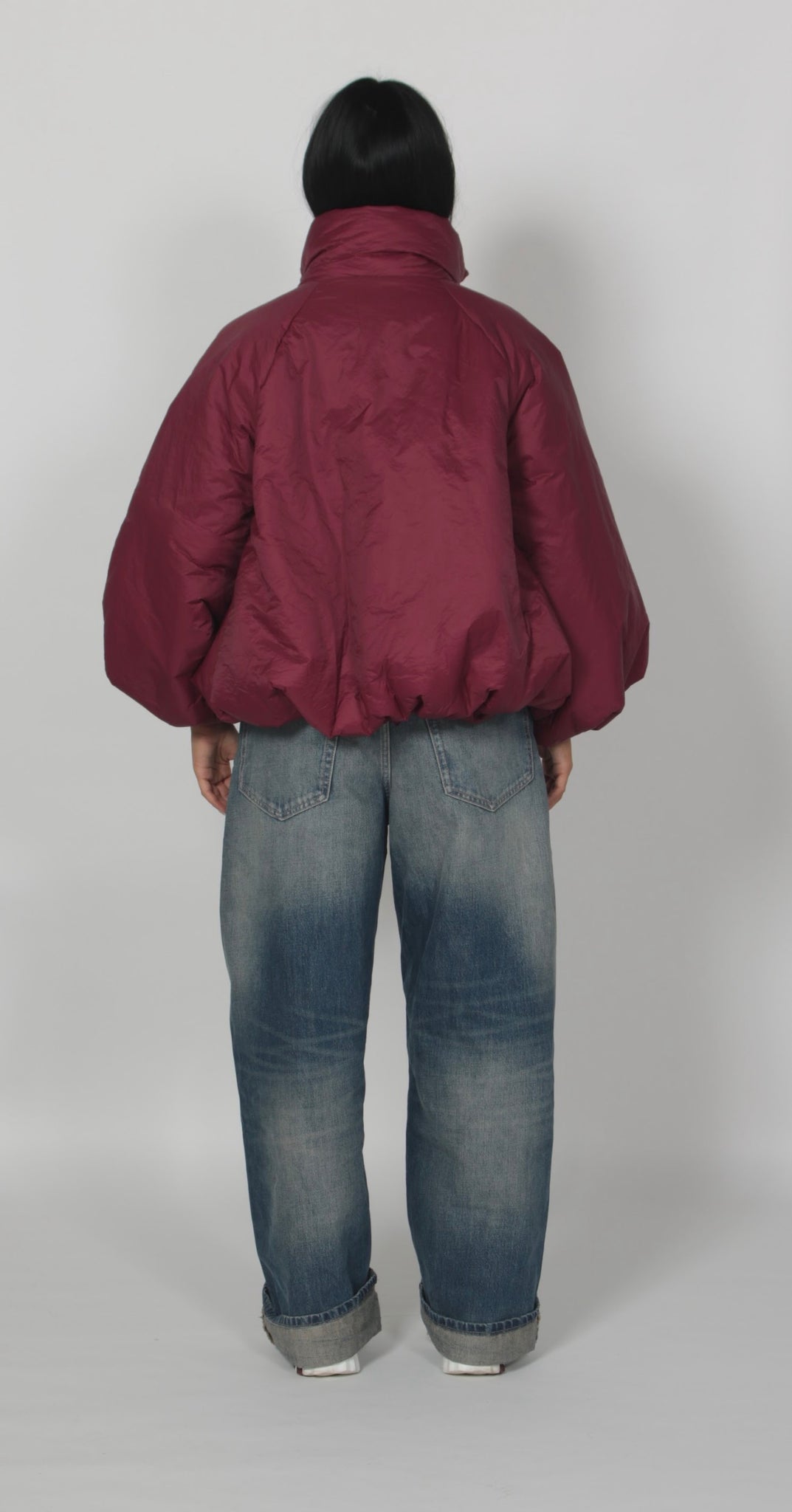 Het model is 1.65 lang en draagt de Jane jackt in maat One Size.