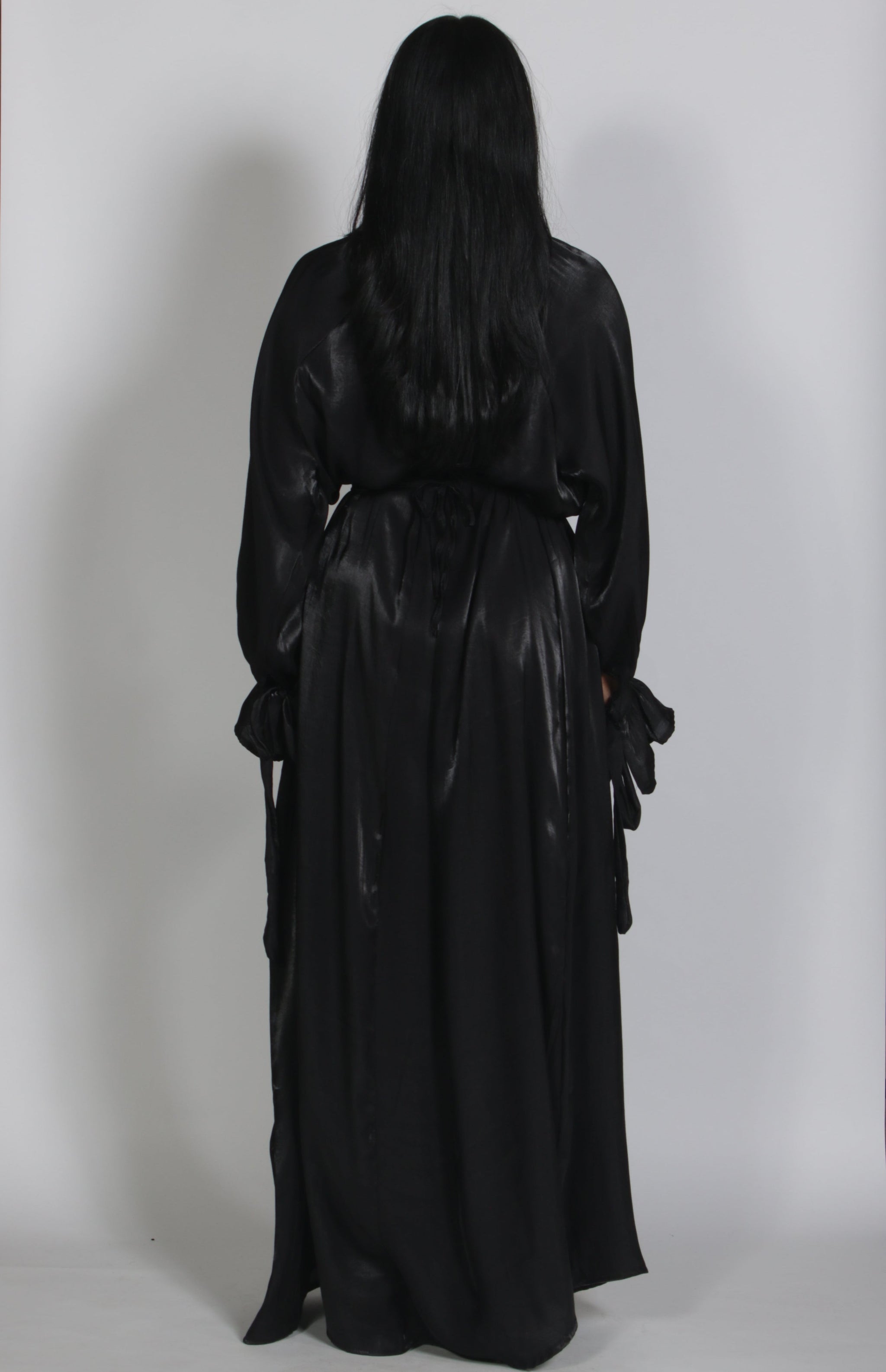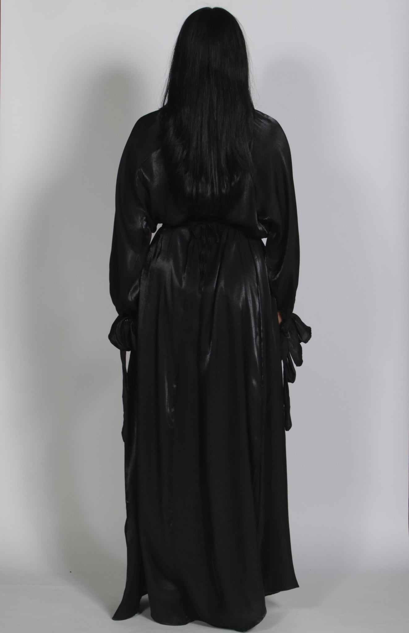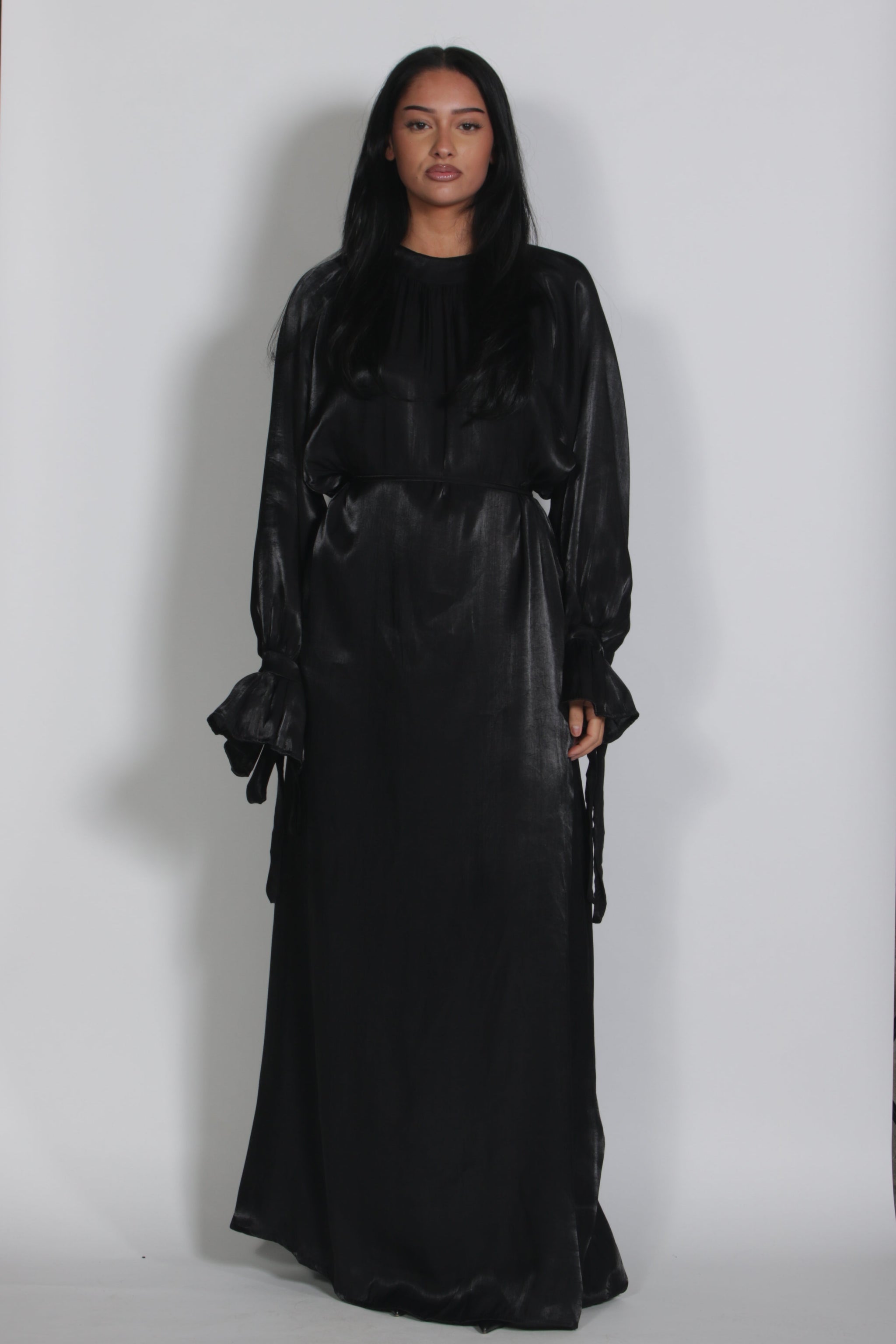 Het model is 1.65 lang en draagt de Esma dress in maat One size.