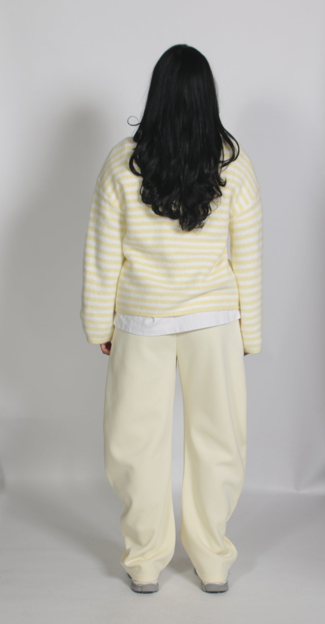 Het model is 1.65 lang en draagt het Sarah vest in maat One Size.